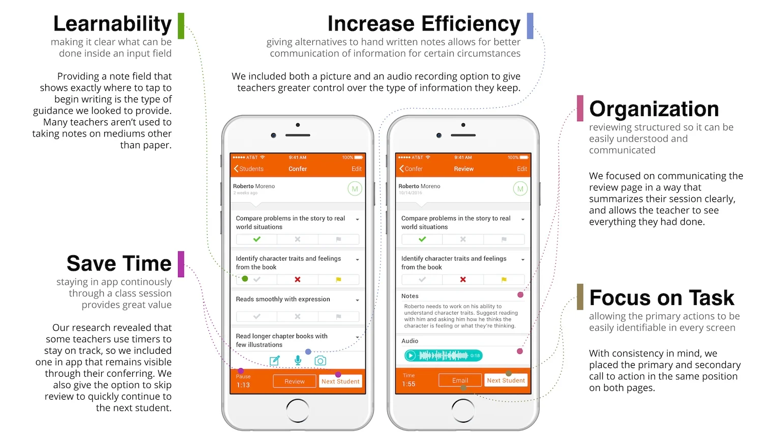 Our clients asked us to create a scheduling feature to help teachers plan their 1:1 conferring sessions with their students.